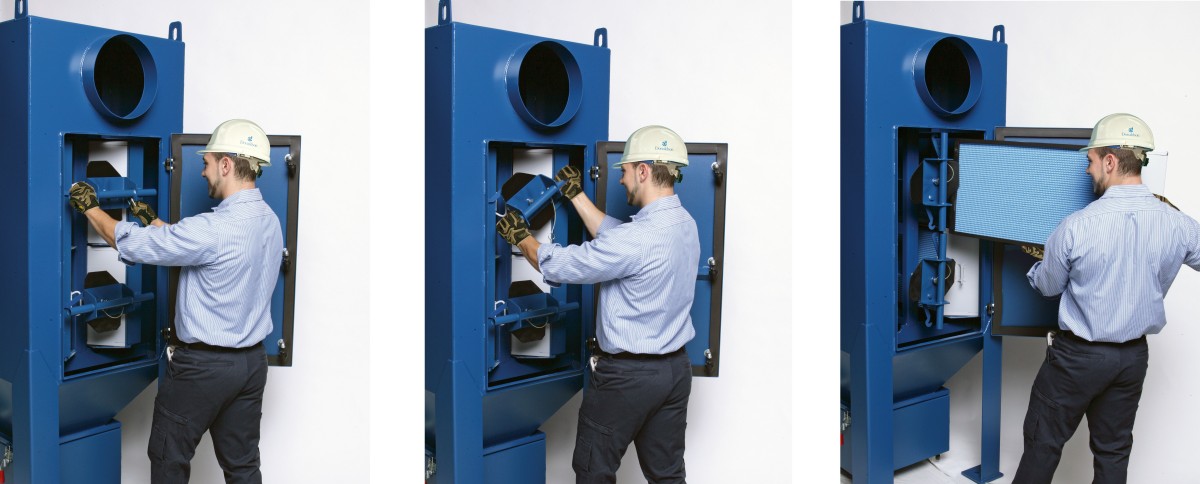 What makes Torit PowerCore TG so smart? The difference is compact PowerCore filter packs with easy-grip handles that don’t require tools.