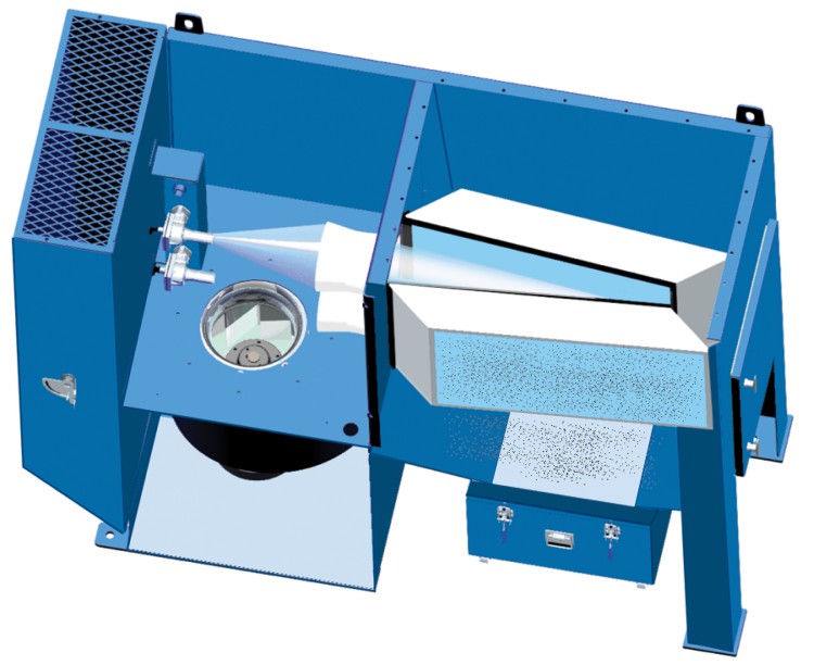 A. The PowerCore filter is neither a bag nor a cartridge. It’s a filter pack with a handle. We’ve configured the media into a corrugated flute structure, which not only makes the pack rigid and sturdy, but allows more media to be used effectively in a smaller volume. The media is then rolled into an “ob-round” shape that is only 17.8 mm / 7 in. deep by 55.88 mm / 22 in. long. The PowerCore filter pack, in conjunction with the PowerCore collector, has been designed to replace conventional baghouses with fabric or pleated filter bags. You’ll be amazed at how easy it is to change out the PowerCore filter packs. They can be removed and replaced in just minutes, without using tools—and without a confined space permit.